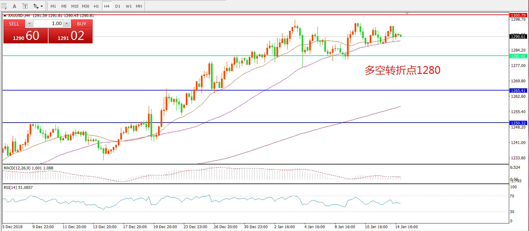 交易策略:在1280.00之上看涨,目标1300.00 1319.00