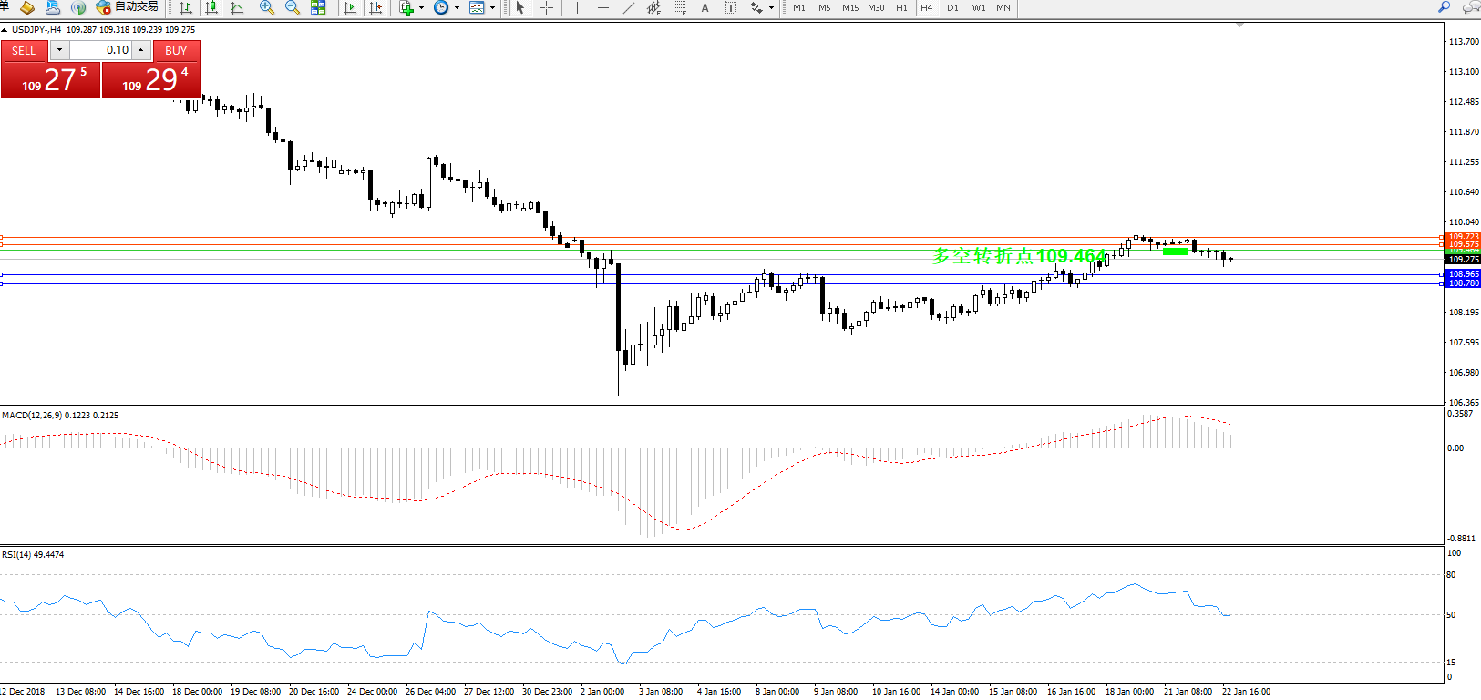 交易策略:109.464下方看跌,目标108.965108.780