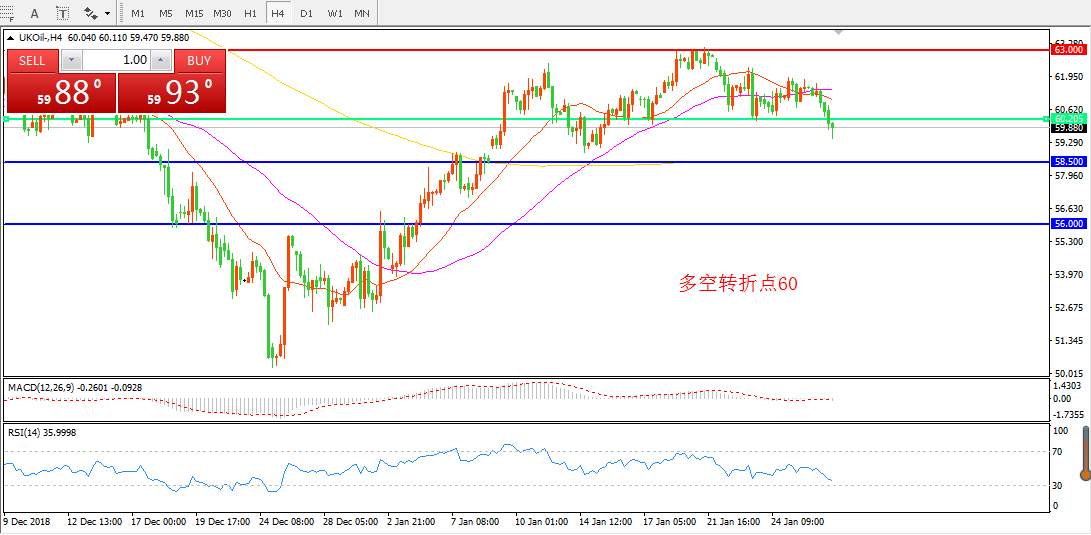 交易策略:在60.00之下看跌,目标58.50  56.00