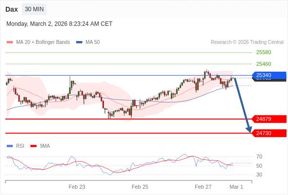 在 25340 之下,看跌,目标价位为 24879 ,然后为 24730 。