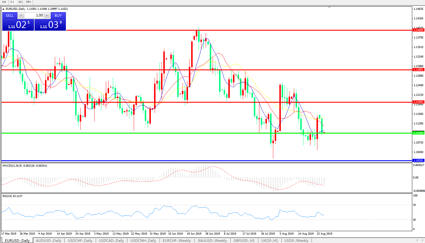 交易策略:1.1100上方看涨,目标1.1285、1.1400
