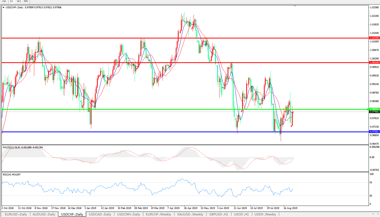 美元兑瑞郎USDCHF 日线图:
