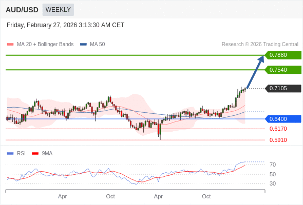 在 0.6400 之上,看涨,目标价位为 0.7540 ,然后为 0.7880 。