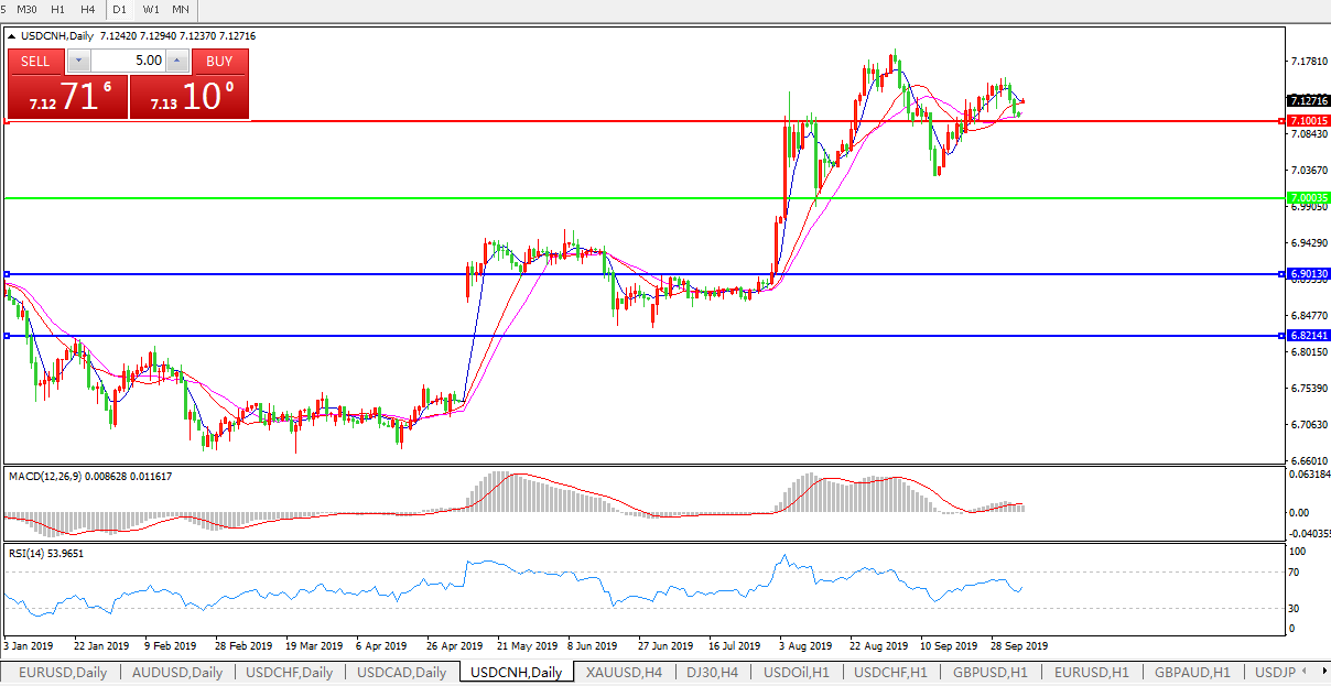 技术面简析:日图均线整体呈攻势但短期均线有下行迹象,汇价站稳7.10关口并伴随间歇性上攻,MACD运行于0轴上方但量能逐步萎缩,RSI走低后有止步迹象,预计短期汇价有进一步上行空间但中期汇价大概率将下行,上方重点关注7.20-7.30区间的压制;中美贸易谈判进展须持续关注。