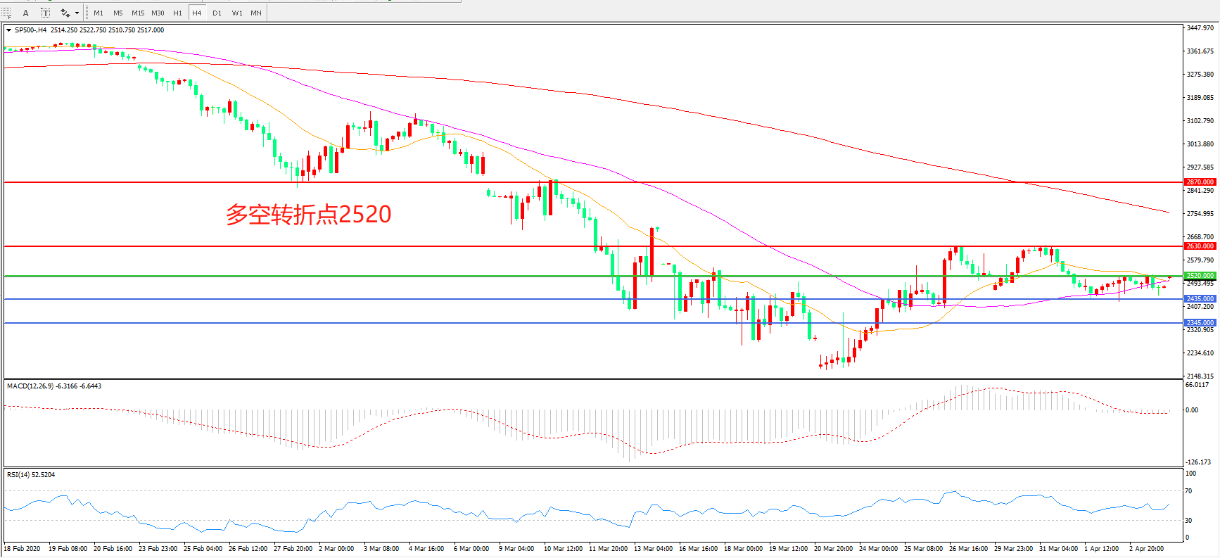 多空转折点:2520.00