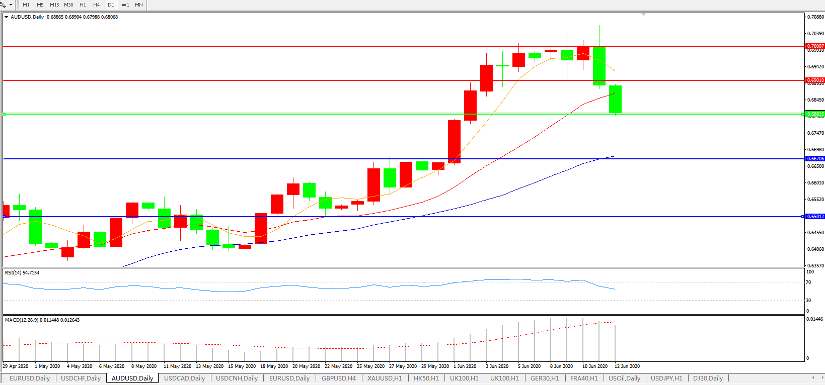 澳元兑美元AUDUSD    日线图: