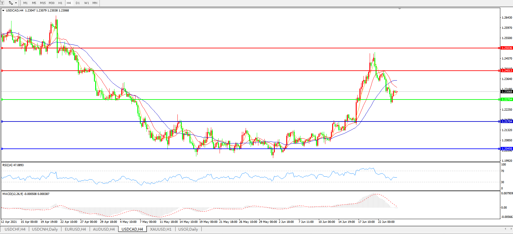 美元兑加元USDCAD    4小时图: