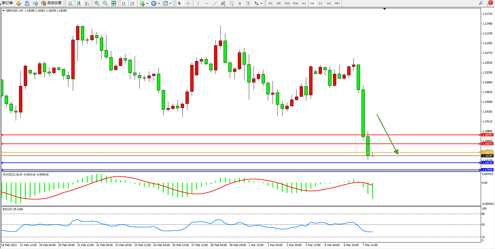 交易策略:1.18370下方看跌,目标1.18575  1.18787