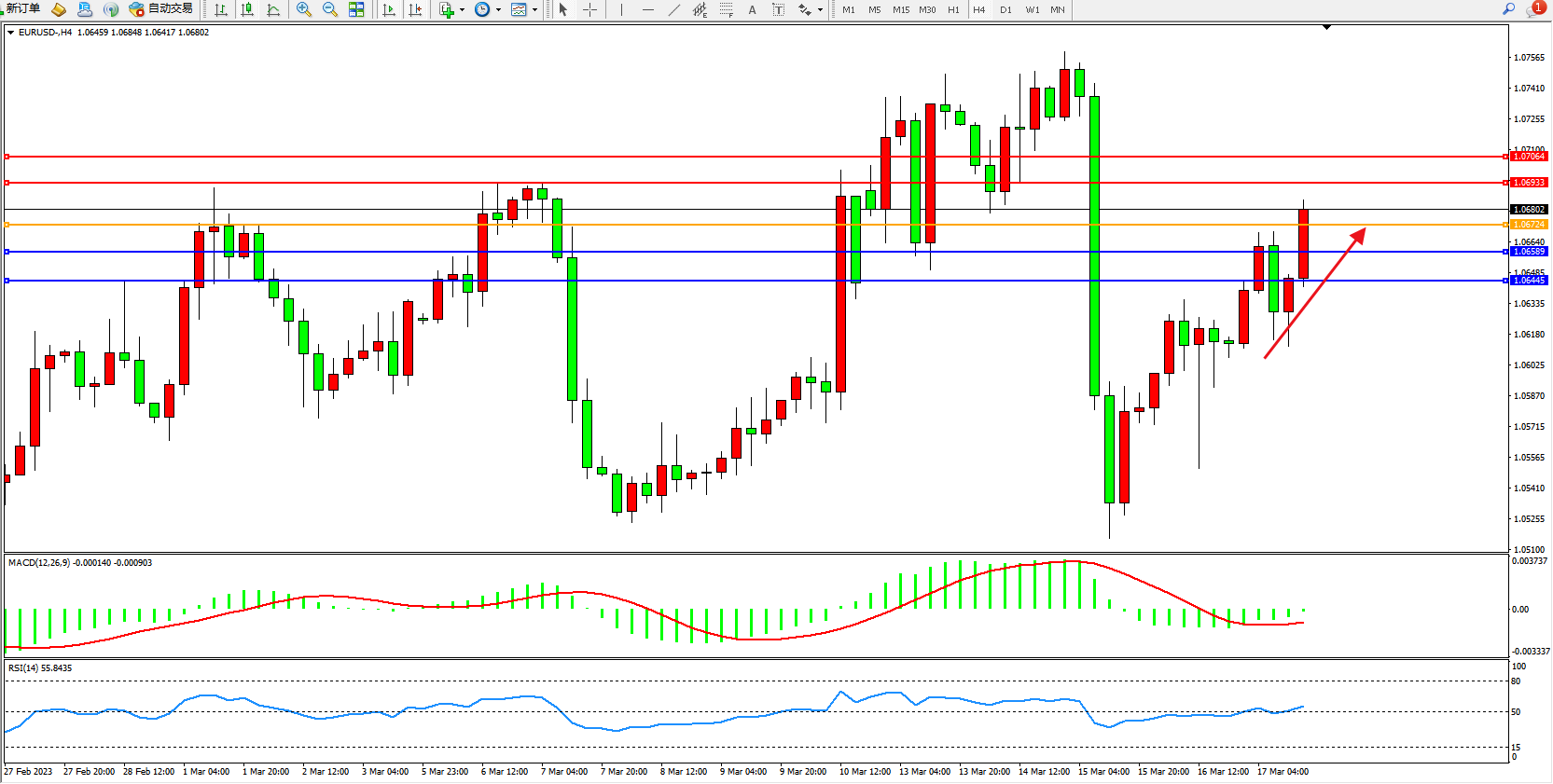 阻力位:1.06933  1.07064
