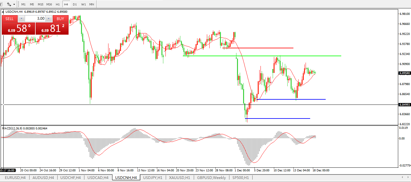 备选策略: 在6.9200之上,看涨,目标价位为6.9300,然后为6.9557。